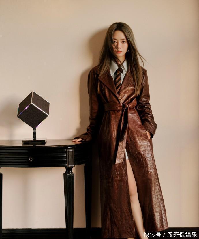 公开的封面照片显示,谭松韵身着黑色长款皮衣,发型经过打理并改变了发色,妆容强调眼部轮廓,整体视觉呈现偏向冷峻与飒爽。